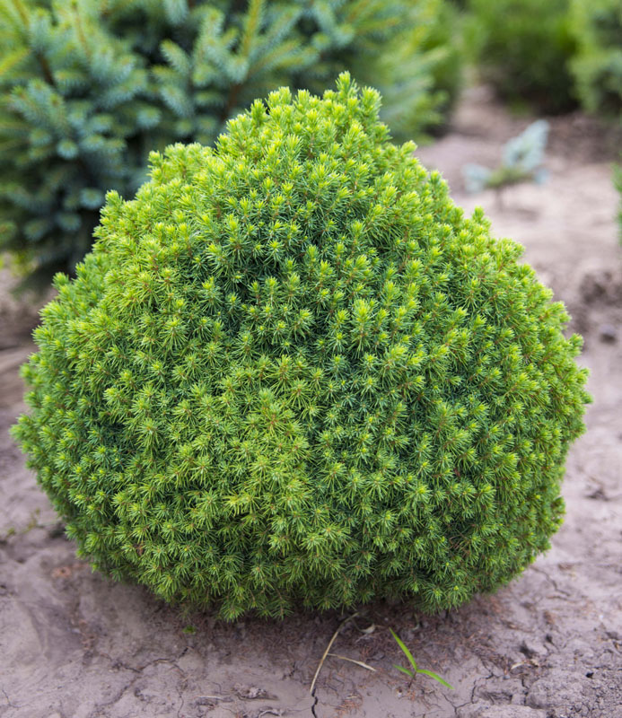 семена ели канадской Alberta Globe по доступной цене предлагаются под посадку на вашем участке, где за ними будет проводиться тщательный уход. Шаровидный сорт отличается густым покровом. Растет медленно, в 10 лет достигает в диаметре 40 см. Карликовая ель канадская Alberta Globe подходит для альпинариев и оформления садов в восточном стиле. Даже во взрослом состоянии диаметр кроны не превышает 100 см, в высоту деревце вырастает до 70 см. Побеги тонкие, хвоя короткая, светло-зеленая. семена светолюбивы, но хорошо приживаются и в полутени. Посадка канадской ели обычно не вызывает особых проблем. Сорт вынослив, неприхотлив в уходе, морозостойкий. В любом возрасте держит аккуратную округлую форму.