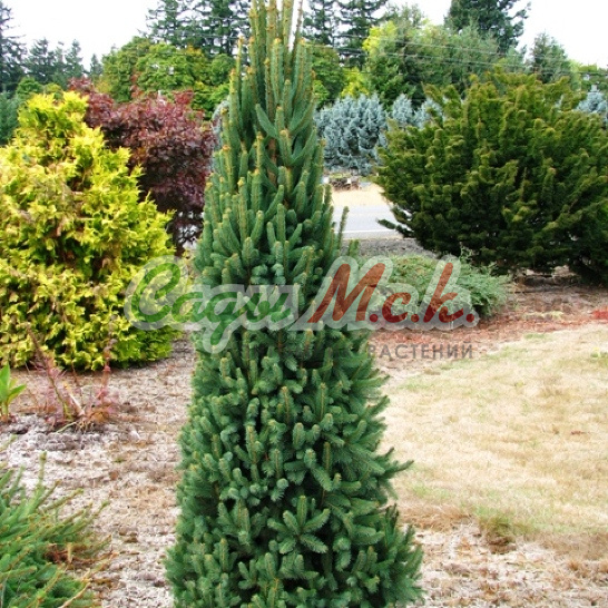 Ель восточная Skylands - дерево с пирамидальной кроной и короткой плотной хвоей, которая круглый год красуется золотистой окраской. Достигает 11 м в высоту и 2 м в ширину, но растет медленно - не более 8-15 см в год, а в молодом возрасте еще медленнее (в 10 лет может иметь высоту 1,6 м). Одна из самых популярных разновидностей ели.