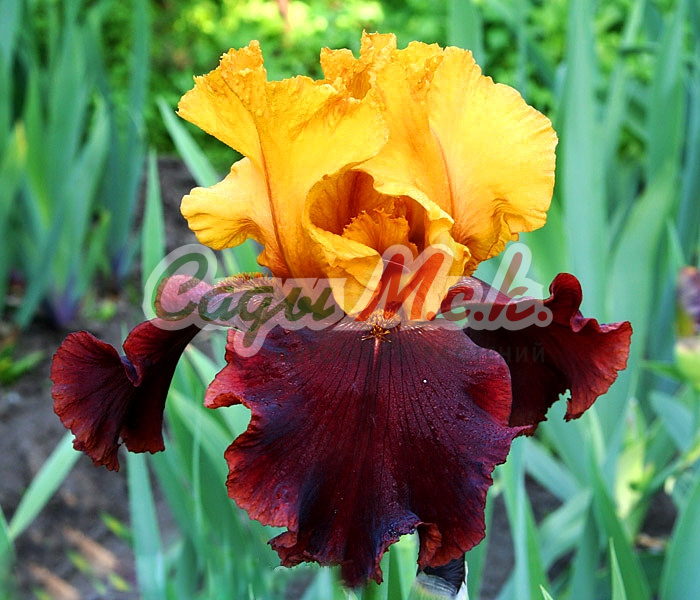 Рассада ириса Almaden относится к ирисам достаточно редкой красной расцветки. Высокий бородатый сорт имеет в высоту до 90 см. Нижние доли (фолы) и верхние доли (стандарты) окрашены одинаково в насыщенный темно-красный, переходящий в красно-каштановый с бархатной структурой или темно-бордовый. Бородка также красно-коричневая, а в верхней части бронзовая с расходящимися от нее белыми лучиками. Верхние и нижние доли - слабо гофрированные Цветение позднее. Сорт известен с 1990 года и не теряет своей популярности.