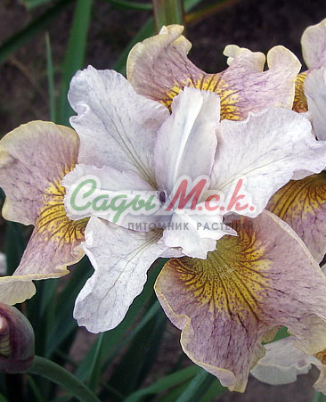Snow Mound обладает белыми стандартами. Фолы темно-фиолетово-синие с тонкой белой каймой, бархатистый Бородка лимонно-белая.