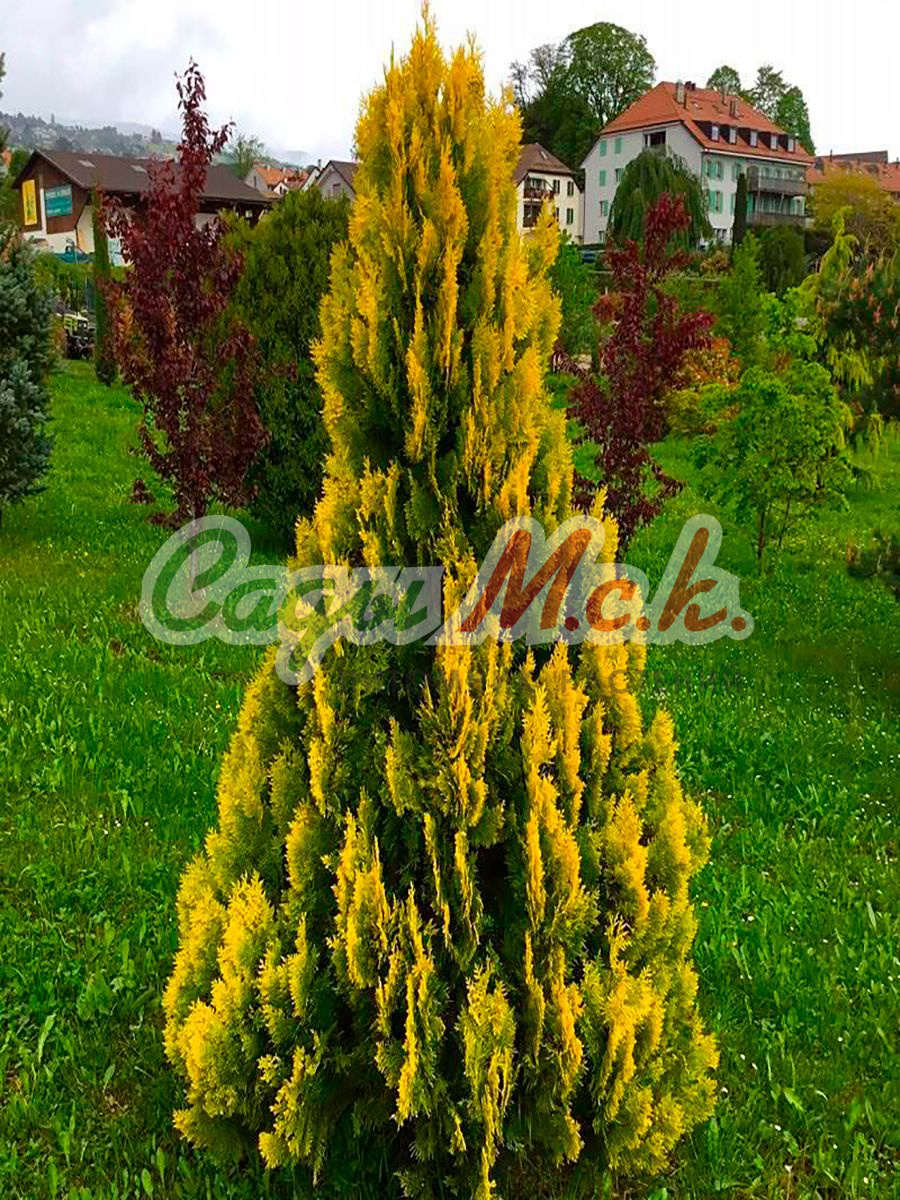 Туя складчатая Аtrovirens - дерево 12-15 м высоты, диаметром 3-5 м. Крона коническая, плотная, компактная. Хвоя насыщено темно-зеленая, блестящая. Растет быстро, часто используется для живых изгородей.